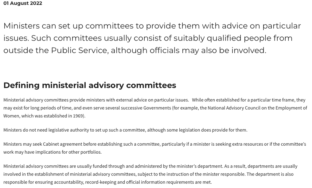 Let’s remind ourselves of the purpose of a ministerial advisory group or committee (MAG). Here is what the Public Service Commission says: