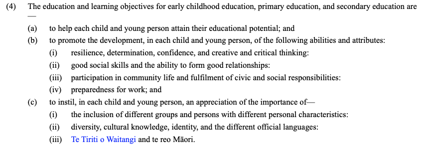 So, (a) is about academic achievement, (b) is about dispositions and competencies, and (c) is about inclusion, culture, and the bi-cultural foundation of Aotearoa New Zealand.