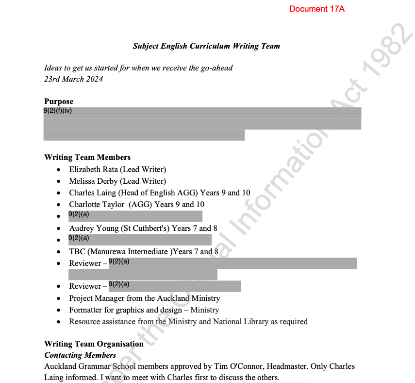 “I’m at the NZ Initiative retreat … I understand that it’s the Ministry’s job to put together the writing groups, but they need to do so in consultation with key MAG members. In the case of subject English, that means Elizabeth.”