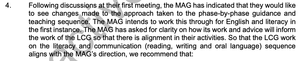 The updated terms effectively reposition the work of the MAG from reviewing the existing refresh work to directing the rewrite of the curriculum, including its knowledge-rich direction. It represents a re-centring of a dominant culture, as represented by the tight ideological unity amongst the MAG. This is in direct contrast to the wide-ranging, inclusive, and exhaustive curriculum refresh work that had been done up until late 2023.