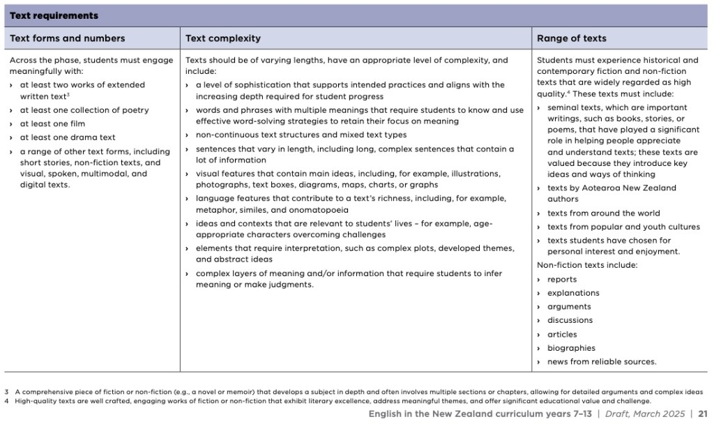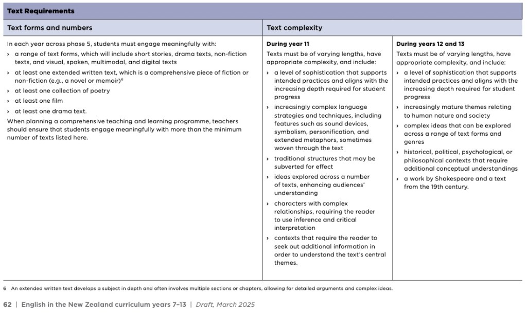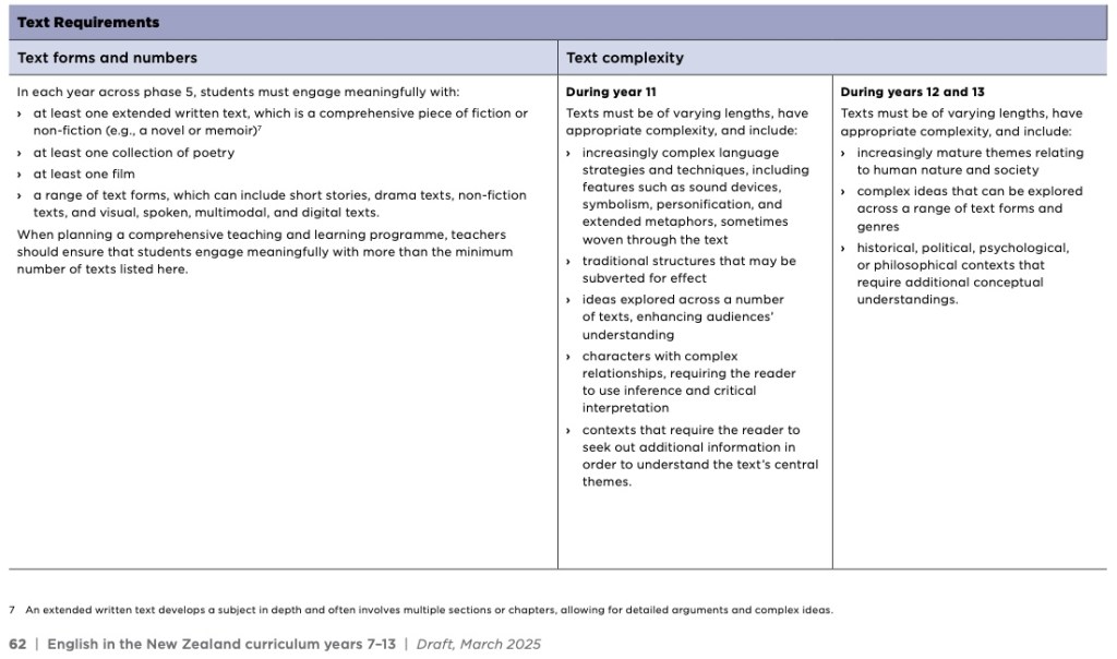 I think these give us fingerprints we can look for, beyond the headlines of the mandating of Shakespeare and the the removal of the stipulation to include Māori and Pacifica authors, to help us think about who made the changes. We must also bear in mind that even though Rata lost control, she was one of 20 writers and she tells us her CDC Model was used to develop it, so what we have is something that will reflect strongly her ideas, even in its signed-off version.