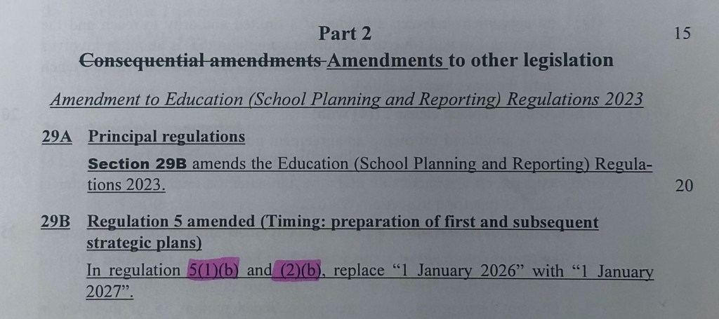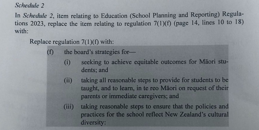 But there is a glimmer of hope. The select committee report, prepared before the last minute amendment that removed Te Tiriti from these sections, recommended the date for the adoption of new strategic plans be moved out a year, until 2027. Erica Stanford accepted this recommendation. In the debate, Willow-Jean Prime pointed out that this meant boards got a another year to operate under their existing (Te Tiriti-infused) strategic plans.
